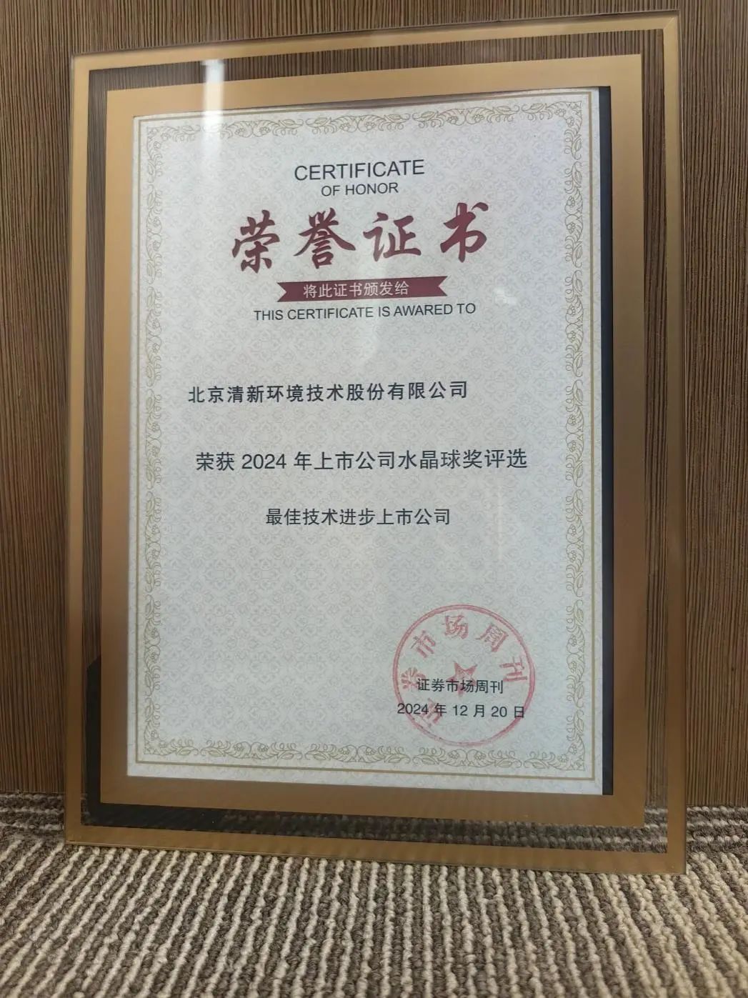 近日,《证券市场周刊》第18届(2024)资本市场水晶球奖榜单评选活动圆满落幕,清新环境荣获2024年度上市公司技术进步奖。
