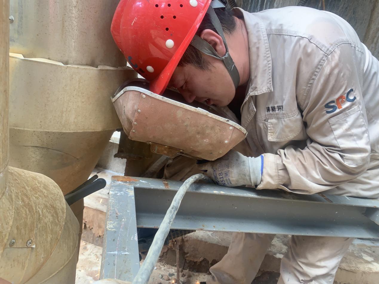 检修主管兼环保张方利焊接吸收塔密度计冲洗加装平台底部支撑工作