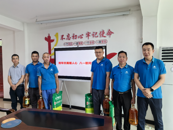 遂宁鑫宇公司组织开展“拥军优属暖人心,八一慰问送关怀”专题活动。公司领导仔细询问了退役军人及军人家属职工的生活情况和身体状况,认真聆听他们对供公司的意见和建议,感谢他们为公司作出的贡献。